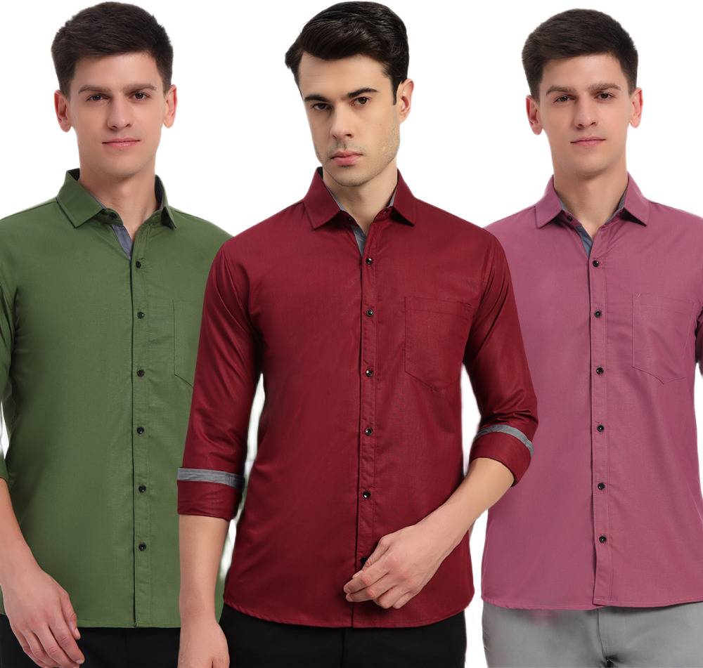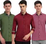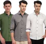 IMPRESIO Men Regular Fit Solid Button Down Collar Casual Shirt (Pack of 3)