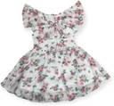 Floral Printed Dress for Girls | Kids Frock & Dresses Frocks with Waist Tie & Back Zip | Knee Length (white | Age - 3 to 4 Years)