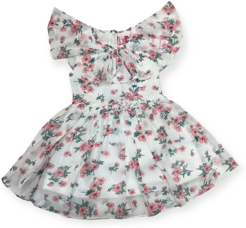 IMPRESS - Floral Printed Dress for Girls | Kids Frock & Dresses Frocks with Waist Tie & Back Zip | Knee Length (white | Age - 3 to 4 Years)