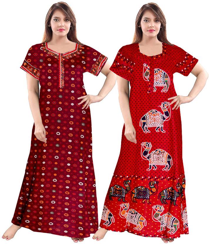 Impression offers this delicately embellished rich long Printed nighty dress for a sweat free comfort all night long. This a perfect pick for women who are fond of stylish nightwear. This Half sleeved nighty is a must have for your night wear needs. Made with 100% soft cotton to keep you cool all throughout. This beautiful nighty comes in free size and completely adjustable for 40-44 inches bust size.