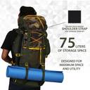 ●The hiking traveling bag is 75 litre, which means it has large space thrice normal requirement of a backpack. This backpack bag comes with a convenient LAPTOP SLEEVE inside the main compartment. And has a powerful suspension system that can transport more items. The rain cover is made of polyester material, which can prevent water from immersing in the bag ●This Hiking bag has Widened and Thickened S-shaped shoulder pad conforms to the ergonomic design, the rich sponge padding has high elasticity, which greatly improves the shock resistance of the backpack during hiking, The breathable back support ensures a good air circulation; the chest strap and safety belt can be adjusted according to needs to ensure the comfort.