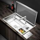 S R Internationals Stainless Steel Silver Matte Finish Kitchen Sink (36 X 20 X 9 Inch) Stainless Steel Silver Matte Finish Kitchen Sink with Cup washer & Drain Baskets Top Mount (Silver)