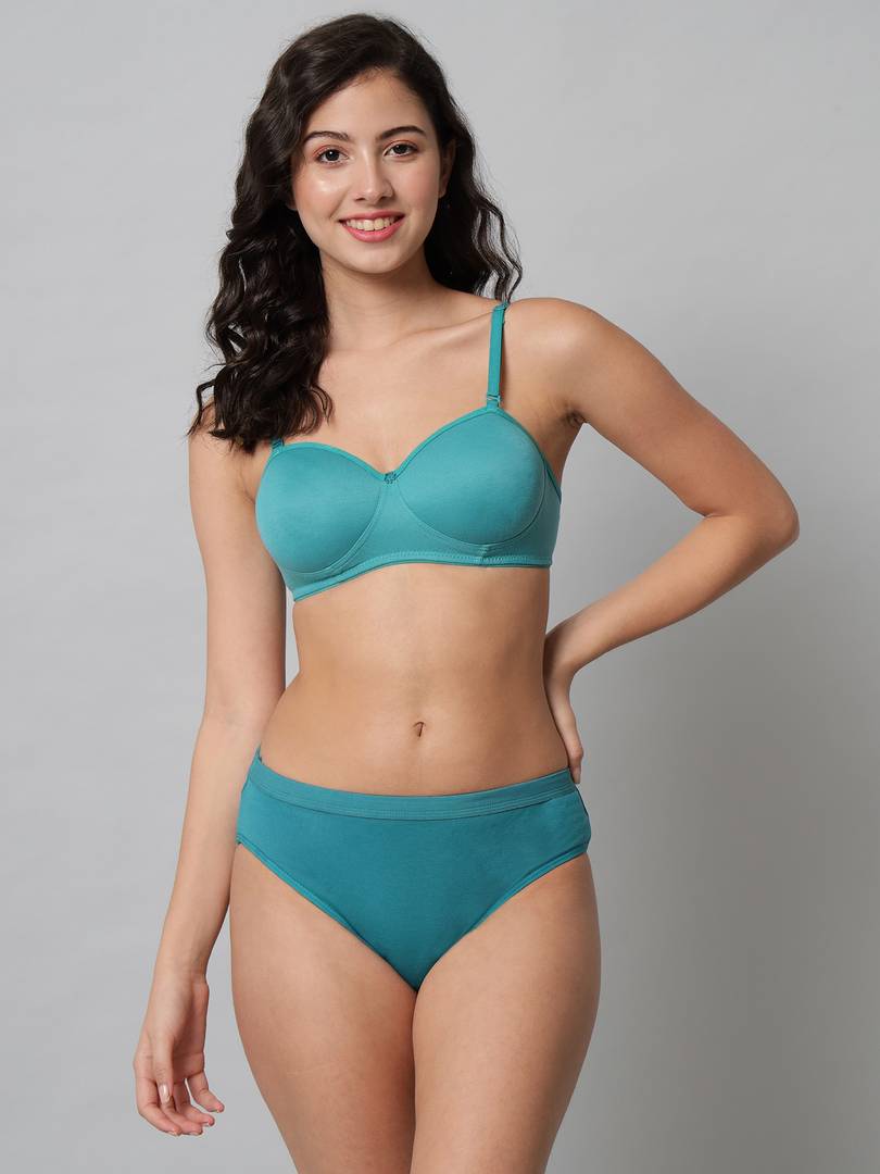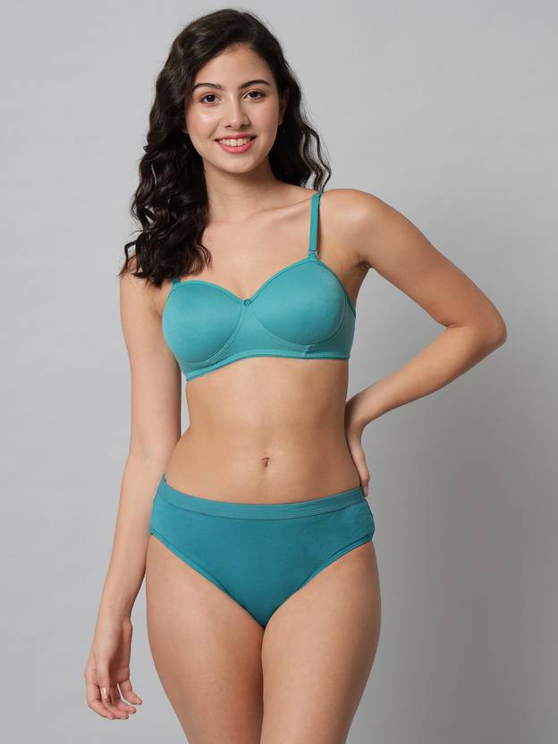 Bra & Panty Set Solid Green Lingerie Set