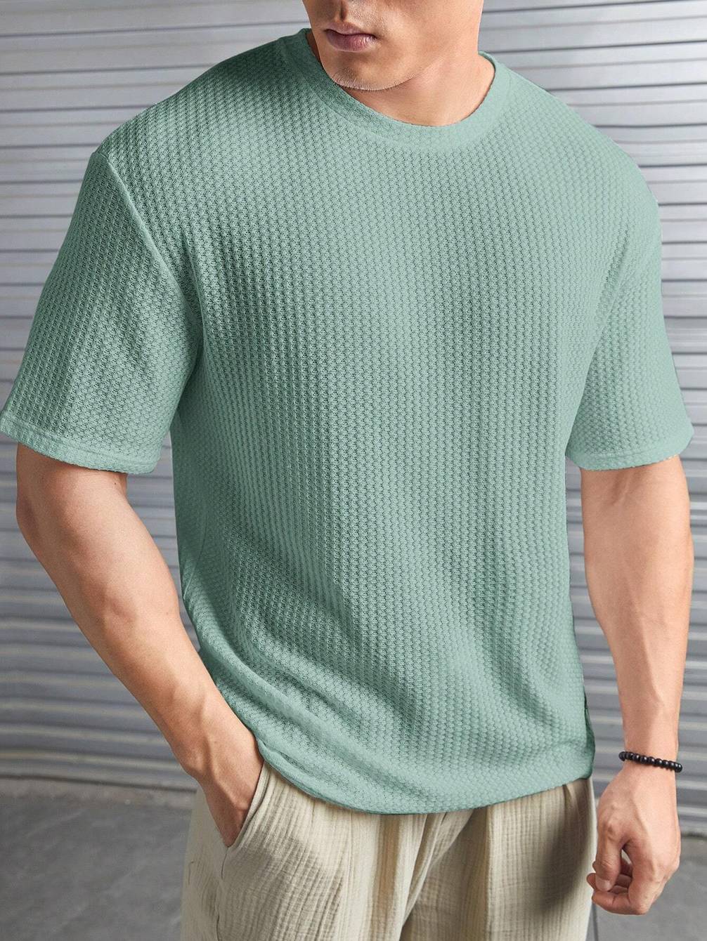 Moyzikh Self Design Men Round Neck Light Green T-Shirt