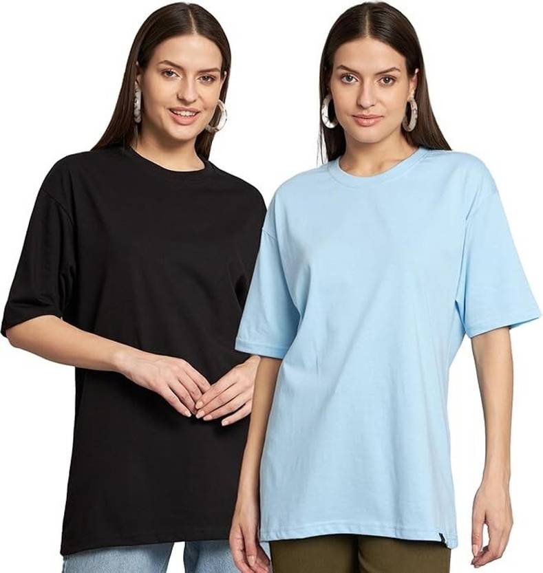 Women Solid Round Neck Polycotton Multicolor T-Shirt
