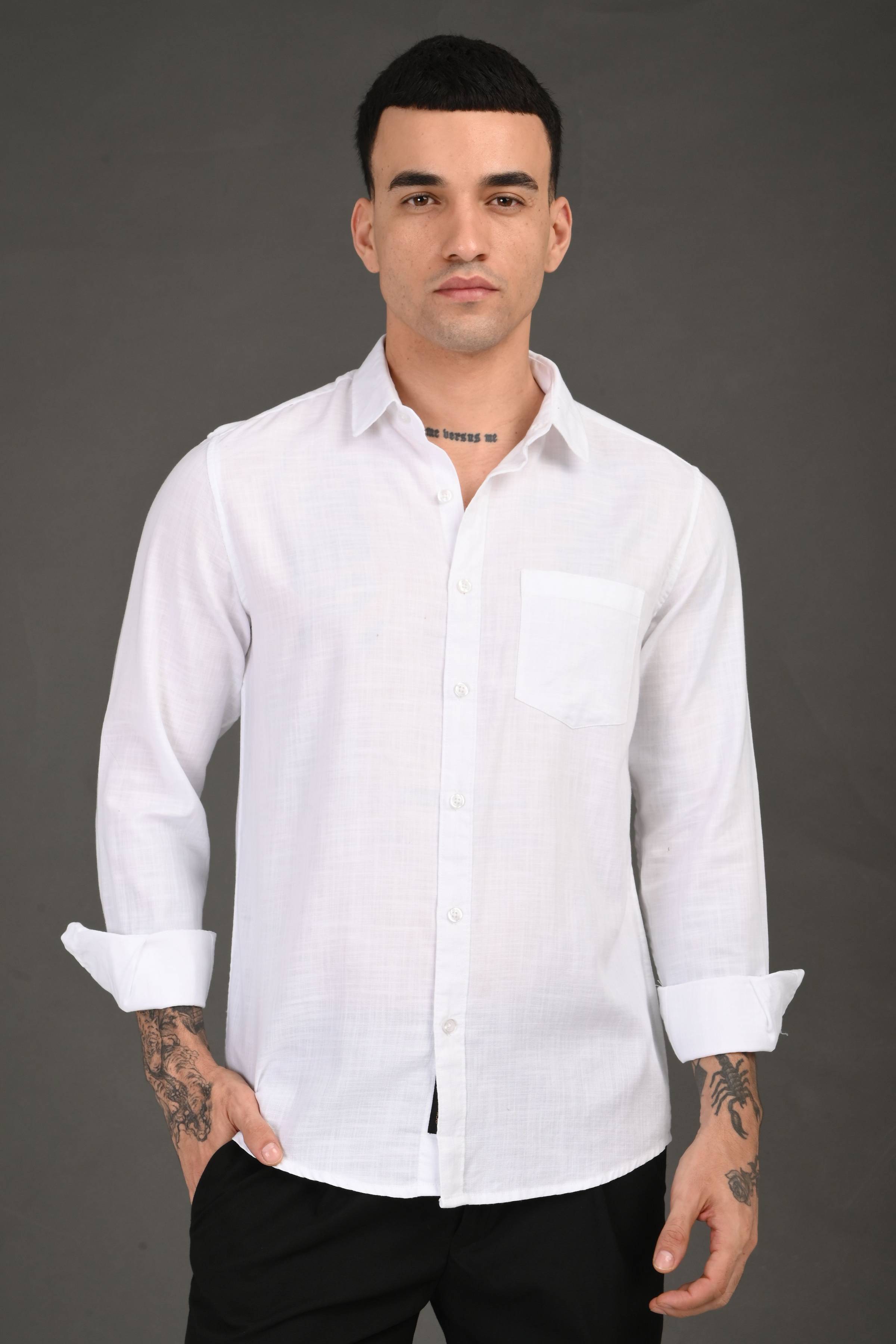 Upgrade your wardrobe with this premium white cotton-linen shirt, crafted for unmatched comfort and timeless style. Made from a soft, breathable blend of natural cotton and linen, it keeps you cool and fresh all day long. The lightweight fabric ensures superior airflow, making it perfect for casual outings, office wear, or festive occasions.