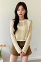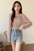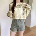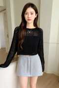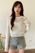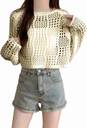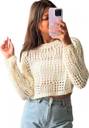 Women's Knitted Crochet Transparent Long Sleeve Hollow Out Sheer Sweater Top T-Shirt Sweater