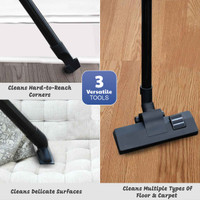 Keep every corner of your home clean with this vacuum cleaner. Equipped with various accessories, this vacuum cleaner helps you clean spots that are difficult-to-reach. The accessories include a crevice tool whose narrow nozzle makes its way into hard-to-reach corners within your home or office. The sofa brush carefully cleans up the accumulated dust from cushions and mattresses, without damaging their delicate surface. Additionally, the floor-cum-carpet brush allows you to keep your floors and carpets clean by sucking out all the gathered dust.