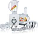 Maximum variety of recipes, minimum effort : Create home made Juices, cakes, Shakes and many more 3 Speed settings and pulse for maximum control: For best results, use the low speed setting to whip cream, beat eggs, create pastries and bread dough. The higher speed setting is well suited to chop onions and meats, blend soups and smoothies or shred, slice, grate or rasp vegetables. Unique Locking System: Unique locking system prevents unit getting ON till it is not fitted properly so prevents any type of accident. Bigger & longer feeding tube: Big Size feeding tube saves precutting time of fruits and vegetables. Long size feeding tube prevents hands touching to the sharp Cutting blades. Overload Protector: The food processor is protected against sudden overloads with unique motor safety device. 800 Watt motor for powerful processing: This INALSA Food Processor offers a powerful motor providing power and control to prepare all your favorite recipes. Centrifugal Juicer for fresh fruits juice: This Juicer is ideal for extracting fresh juice from all types of fruits & vegetables such as apple, carrot and manymore. Citrus Juicer for fresh Citrus fruits juice: This Juicer is ideal for extracting fresh juice from all types of citrus fruit such as oranges , lemon and grapefruit. Max Steel SS-304 Jar Blades : This high quality stainless steel Jar Blades has been tested extensively to provide the best results. Perfect accessory for cream and egg whites: The perfect accessory for whipping, whisking or emulsifying eggs or whipped cream. For best volume increase and fluffiness, use the low speed setting. Creating delicious desserts or mayonnaise has never been easier! Powerful Chopper for superior chopping performance: Powerful Chopper provides a superior chopping result in both soft and hard ingredients. It is also perfect for making purées and mixing your cake batters! Perfect accessory for Dough Preparation: A perfect accessory for preparation of dough. Reversible stainless steel disc for slicing and shredding: This high quality stainless steel disc has been tested extensively to provide the best slicing and shredding results. French Fries disc for delicious French Fries: This high quality stainless French Fries steel disc has been designed to provide delicious French Fries. Coconut Shredding disc for shredding coconuts: This high quality stainless shredding steel disc has been designed to shred coconuts. 2.0L Break Resistant Blender Jar: Bigger transparent Break Resistant jar for more shakes in one go. 1.0L Stainless Steel Jar: Dry grinding jar for grinding of spices and other condiments 0.4L Stainless Steel Chutney Jar: Chutney jar for making chutneys of your own choice. Break Resistant Processing Bowl: Break Resistant Bowl prevents breakage incase dropped by accident. Longer Warranty: Longer warranty (2 Years on Product & 5 Years on Motor) for peace of mind.