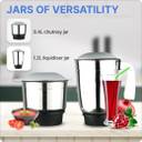 Courtesy of its Polo blades, this mixer-grinder performs precise, uniform, and effective grinding. Also, as they’re made of stainless steel, these blades are rust-free, safe, and durable. Furthermore, this appliance comes with a 1.2 L stainless steel liquidizer jar and a 0.4 L stainless steel chutney jar.