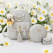 Featuring a stylish design, this backpack set is an ideal choice for anyone looking to combine fashion and practicality. This set includes a main backpack, a small pouch, and a coin purse, all designed to complement each other. With its chic design, this set is a suitable match for everyday use, school, or outings, adding a touch of flair to any outfit.