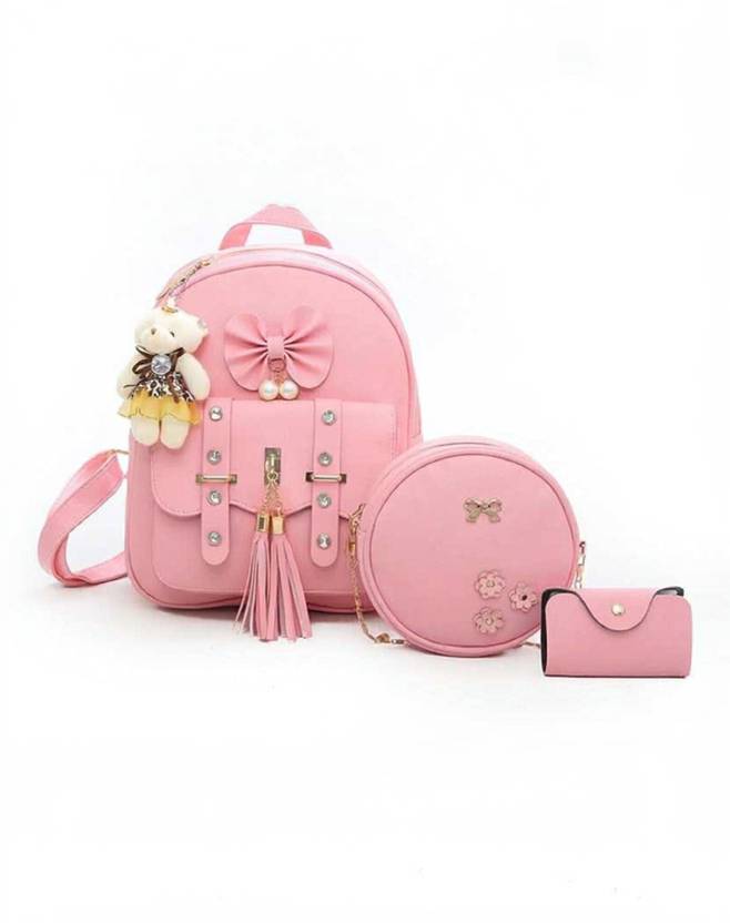 INAXA Stylish Cute Mini 3PCS Combo Set For Girls 5 L Backpack (Pink)