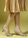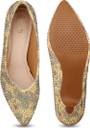 Women Yellow Printed Embellished Pointed Toe Party Heeled Pumps