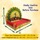 Crafted from premium quality wood, our singhasan stands as a testament to unparalleled craftsmanship and devotion. Each stroke of Meenakari artwork reflects centuries-old traditions, infusing your worship space with timeless beauty and cultural significance.