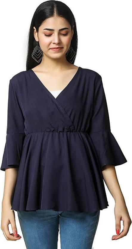 indaisy Casual Solid Women Blue Top