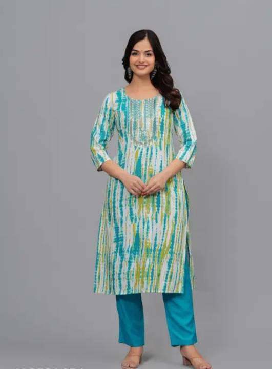 Women Cotton Rayon Kurta Pant Dupatta Set