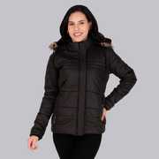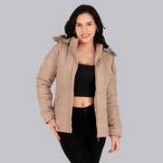 Stay warm and stylish with the jacket. Crafted from durable fabric it features a zip-up front, detachable faux fur hood, elastic cuffs, and two sides zipper pockets a perfect blend of style and function.