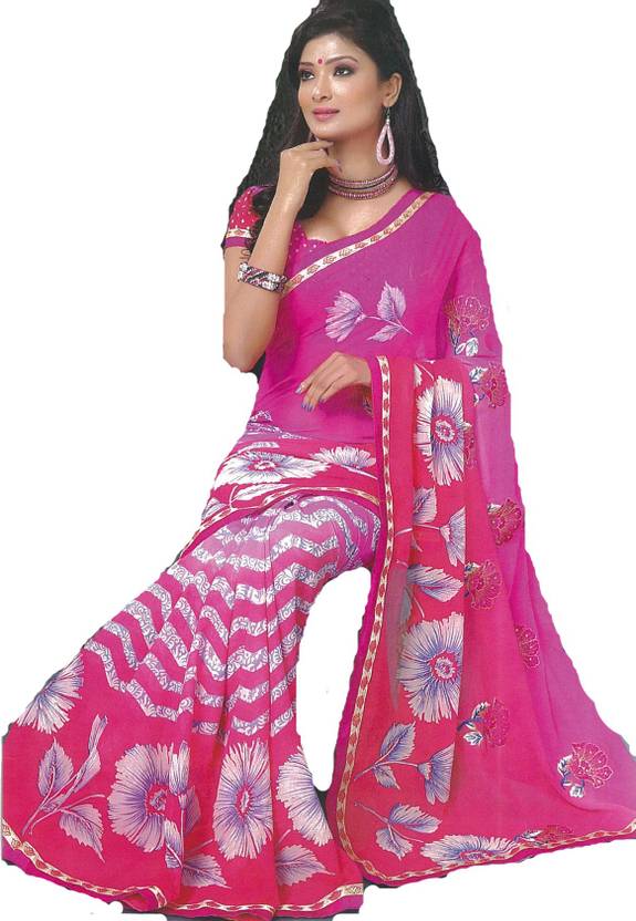 Inder Silk Mills Saree With Blouse Saree Length 5.5 Mtr & 0.80 Blowse Piece Pink Color Printed Saree.