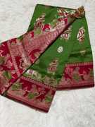Indesa Embellished Baluchari Art Silk Saree (Magenta)