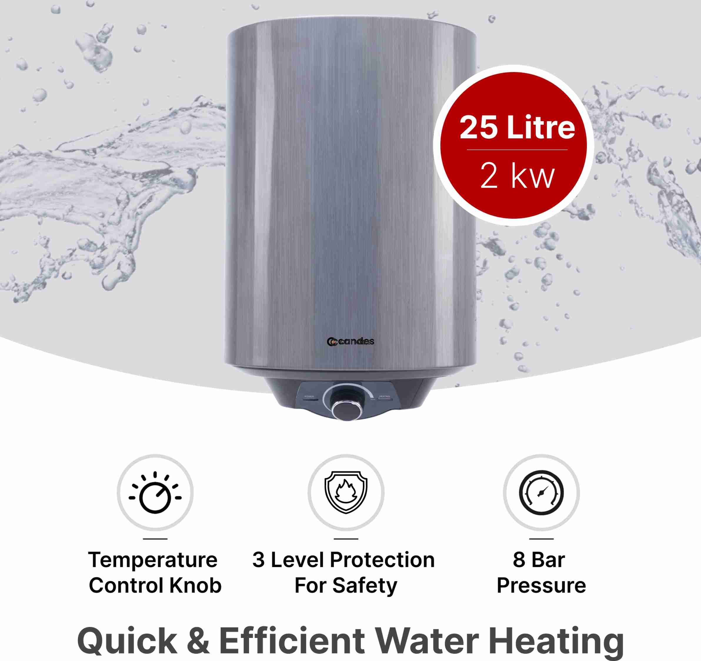 25 L Storage Water Geyser (8 Bar Pressure | Suitable for High Rise | Heat Retention Technology, Silver) (Silver)