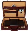The interior of the expandable briefcase is thoughtfully organized to cater to the demands of a professional lifestyle. Multiple compartments and pockets are strategically placed to house a variety of items such as laptops, tablets, notebooks, pens, business cards, and more. Dedicated padded sleeves and secure fastenings offer protection for electronic devices.