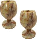 Natural Onyx Marble Wine Glass Table Top Handicraft by Awarded Indian Artisan, Set of 2