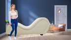 India wood mart Sheesham Wood Tantric Chaise Loung Chair, Yoga Chaise Lounge,Chaise luxury Sofa Engineered Wood Diwan (Finish Color -Blue, Pre-assembled)