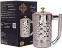 Indian Art Villa Steel Copper Jug is one of its kind beautiful jug in the world.This steel copper jug having Health benefits of copper With Zero Maintainens Like Steel. We use the world's purest copper & the finest technology in the production of the jug. We are leading brands of a wide range of copper products including Copper Water Pot, Copper Jugs, Mugs, Handicrafted items, Home decor items, and gift items. Our main objective is to establish consumer satisfaction in the domain of manufacturing and exporting high-quality copper products and our other products. We hold strong excellence in services, products-quality, commitment, compliance, and competitive rates structure. Indian Art Villa logos are displayed on the images to maintain the authenticity of the images. The logos are not actually printed on the products.This beautiful and unique Luxury Design Copper Jug is made of pure copper. It has been handcrafted with care and is of exceptional quality. It will last a lifetime, and, if properly cared for, multiple generations. As you all know the health benefits of drinking out of a Copper Jug Pitcher and glasses are endless.Now the easy and healthy way of living is much easier than expected as genuine copper kills bacteria and is proved to be a remedy for weight, skin, aging & many other Problem.