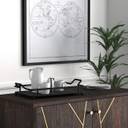 Decorate your home in rustic modern farmhouse style with this attractive rectangular wood and metal accent tray. Place it on your coffee table or ottoman to hold your remotes, beverages, or magazines. Pair it with a grouping of your favorite decor accents to create a gorgeous visual display for an authentic rustic look in any room of the home. Of course, it's sturdy enough to carry beverages and other refreshments to your guests. It's the perfect tray for daily use with lots of style. Constructed of a solid wood base that is routed with the look of shiplap and finished in a distressed natural look, it's held together by a sturdy metal frame with wide handles to make carrying it easy. The overall dimensions measure 19.25 inches wide by 12.25 inches deep by 4.5 inches high. It arrives completely assembled and ready for use. Decorate and organize in rustic chic style in any room of the home with the accent tray.