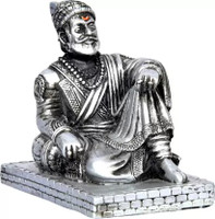Indian Discovery Shri Chhatrapati Shivaji Maharaj Silver Idol Statue Decorative Showpiece - 9 cm (Polyresin, Silver)