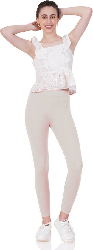 INDIAN FLOWER Ankle Length Western Wear Legging (White, Solid)