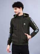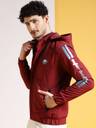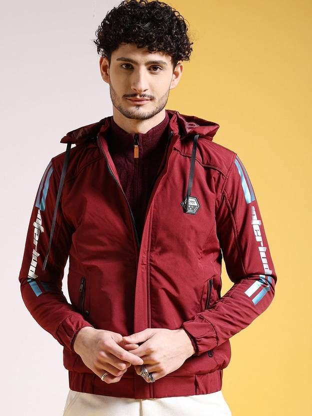 The Indian Garage Co Men Maroon Regular Fit Placement Print Hooded Bomber Jacket