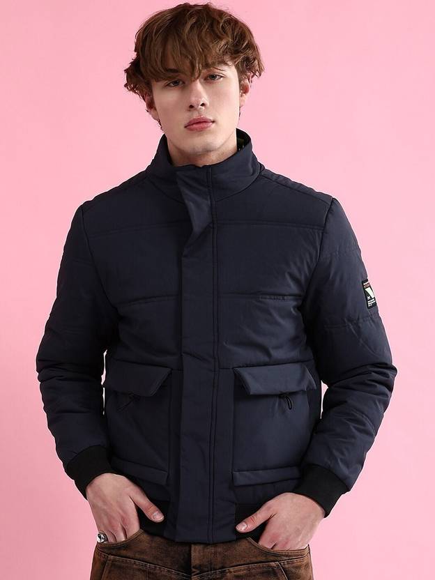 The Indian Garage Co Men Grey Regular Fit Solid Padded Bomber Jacket