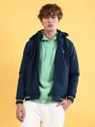 The Indian Garage Co Men Yellow Regular Fit Placement Print Hooded Bomber Jacket