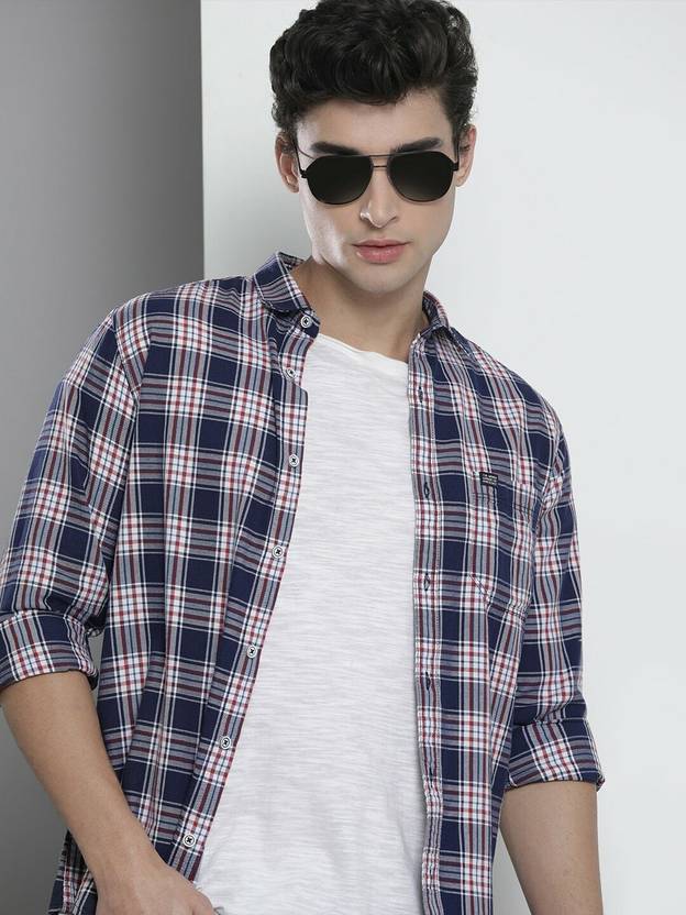 The Indian Garage Co. Men Checkered Casual Blue Shirt