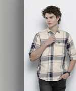 The Indian Garage Co. Men Checkered Casual Cream Shirt
