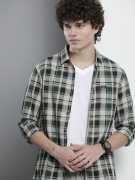 The Indian Garage Co. Men Checkered Casual Green Shirt