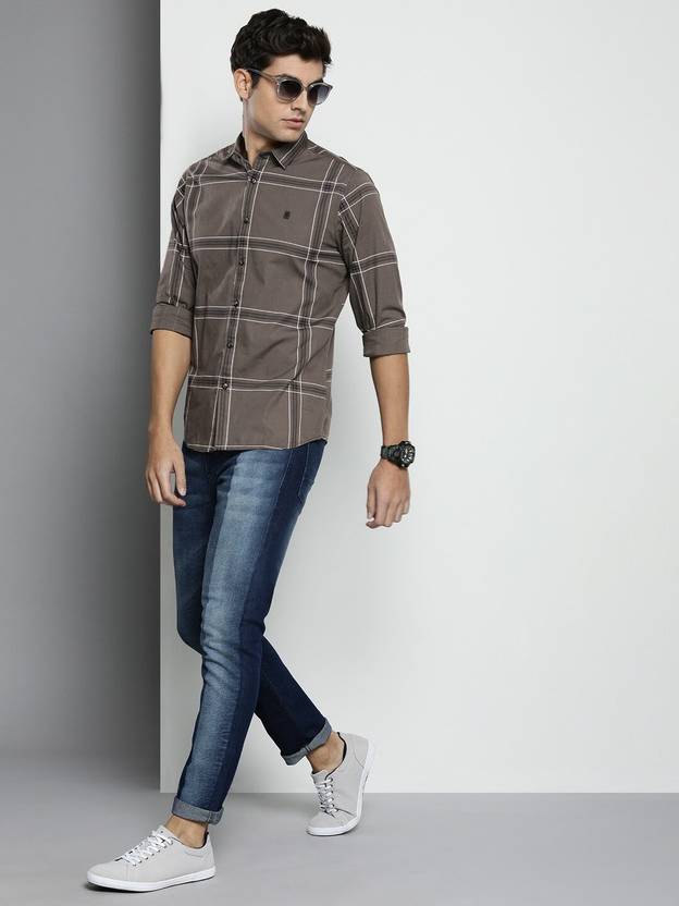 The Indian Garage Co. Men Checkered Casual Grey Shirt