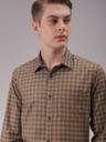 The Indian Garage Co. Men Checkered Formal Beige Shirt