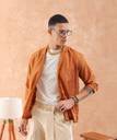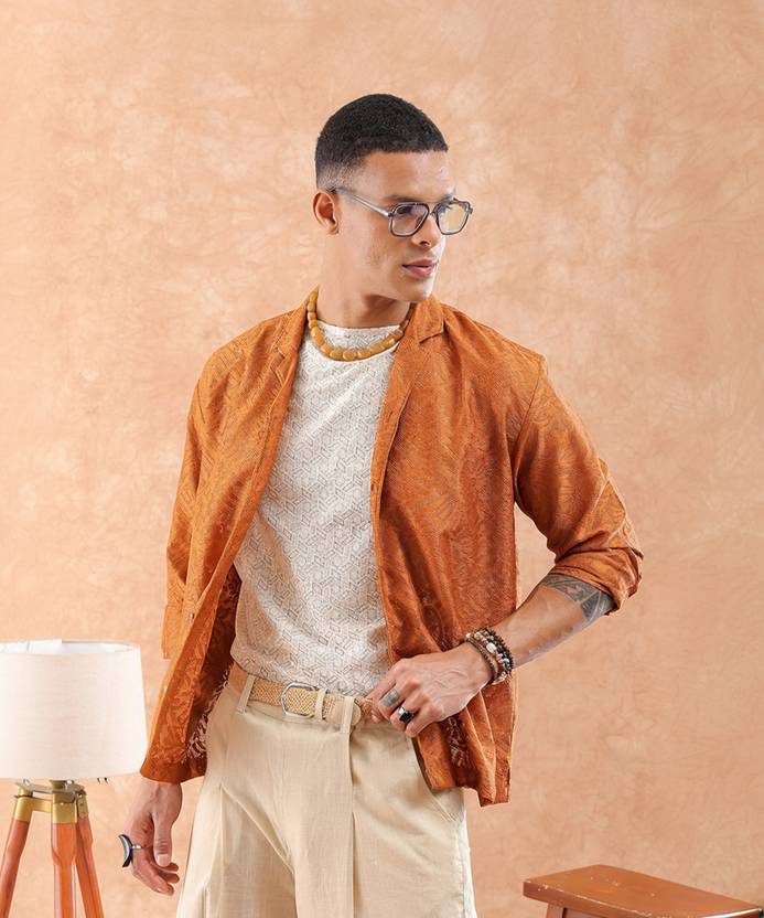 The Indian Garage Co Men Brown Relaxed Solid Resortwear Shirt has Cuban Collar, Full Sleeves, Regular Length and Button Closure.