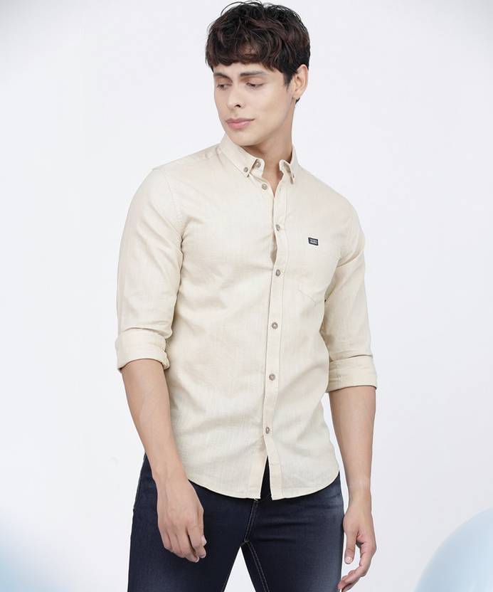 The Indian Garage Co. Men Solid Casual Beige Shirt