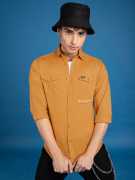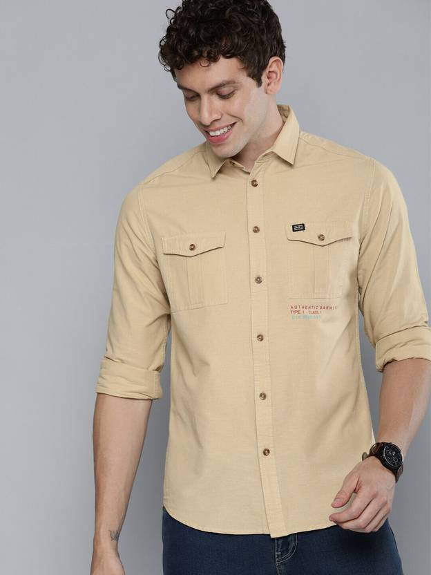 The Indian Garage Co. Men Solid Casual Beige Shirt