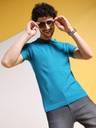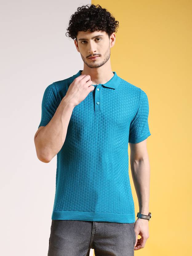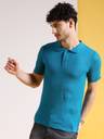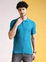 The Indian Garage Co Men Blue Regular Fit Dobby Flatknit Polo Sweater