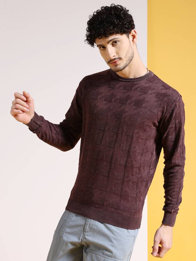 The Indian Garage Co Men Brown Regular Fit Overdyed Crewneck Sweater