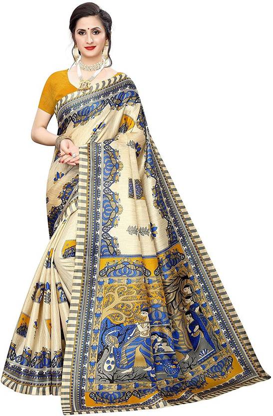 Women's Beautiful Printed Khadi Silk Saree With Blouse Piece