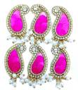 Indian Petals Keri Design Sequence Buti with Stones for Packing Decoration - 11209, Deep Pink