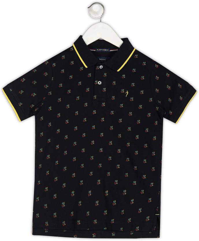 INDIAN TERRAIN Boys Printed Pure Cotton Regular T Shirt (Black, Pack of 1)