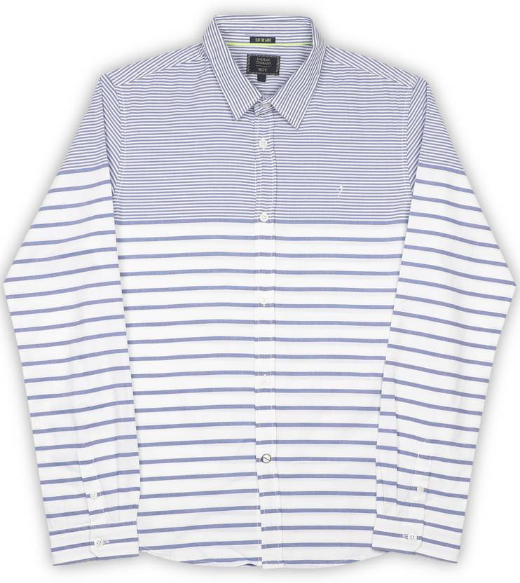 INDIAN TERRAIN Boys Striped Casual White, Blue Shirt