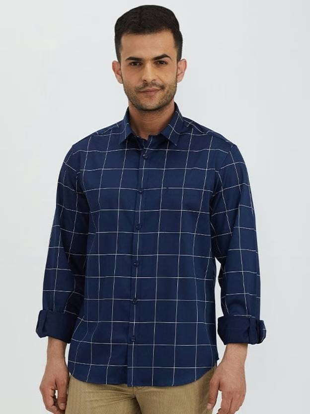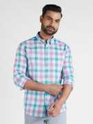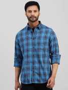 INDIAN TERRAIN Men Checkered Casual Blue Shirt