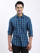 INDIAN TERRAIN Men Checkered Casual Dark Blue Shirt